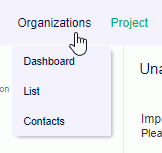 Depending on each user's roles, the following submenu items may be available under the Organizations main menu item: